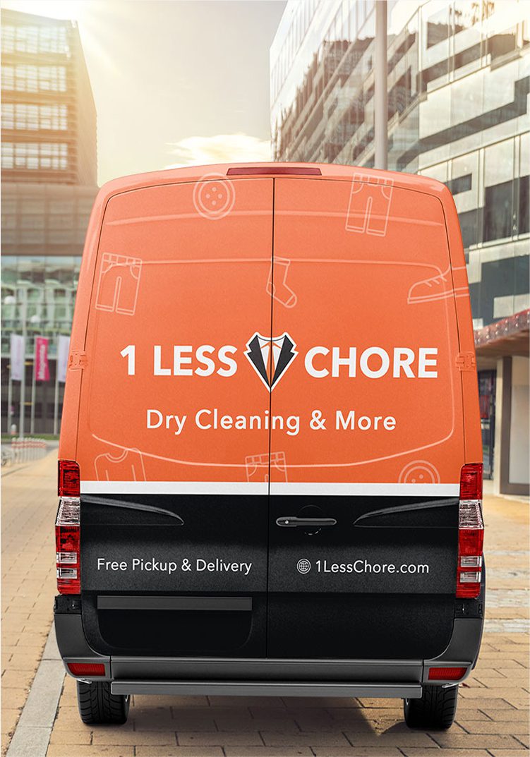 1-Less Chore recently updated their delivery van wraps with a refreshed logo, bold colors, and stronger messaging. We extended this new brand direction across the website and mobile interfaces.