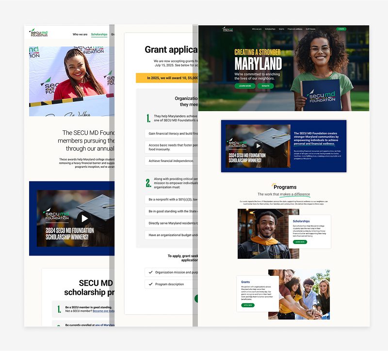 In record time, the newly designed SECU MD Foundation website was launched, bringing a vibrant new life to the organization’s online presence. Post-launch, the foundation saw an influx of applications, with dozens of students and organizations benefiting from the scholarships and grants offered. The new site has improved visibility into the foundation’s mission and services, thereby fostering greater community engagement and support.
