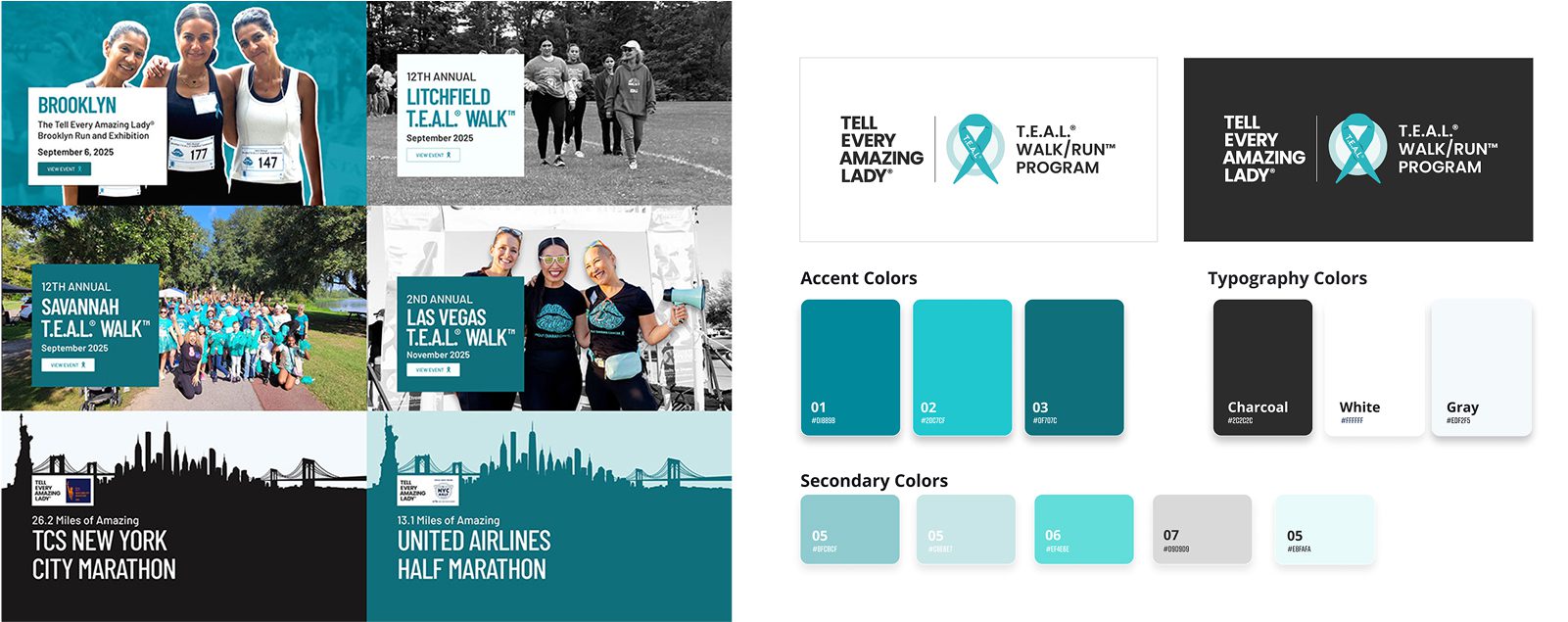 With the rebranding of the Tell Every Amazing Lady® organization came the need for a holistic strategy: an updated logo variation, refined brand styles, and a dedicated online platform for the T.E.A.L.® Walk/Run™ Program.